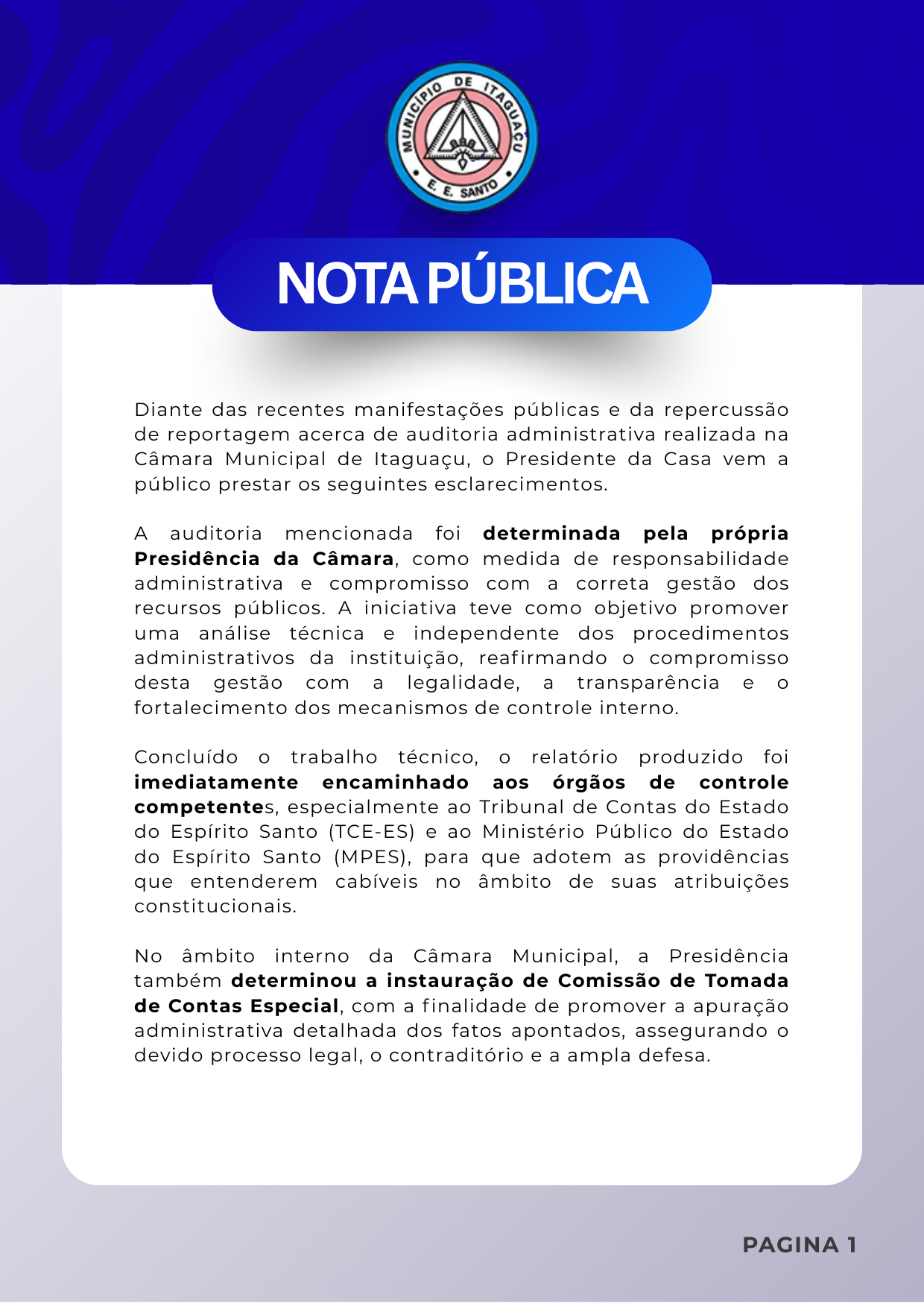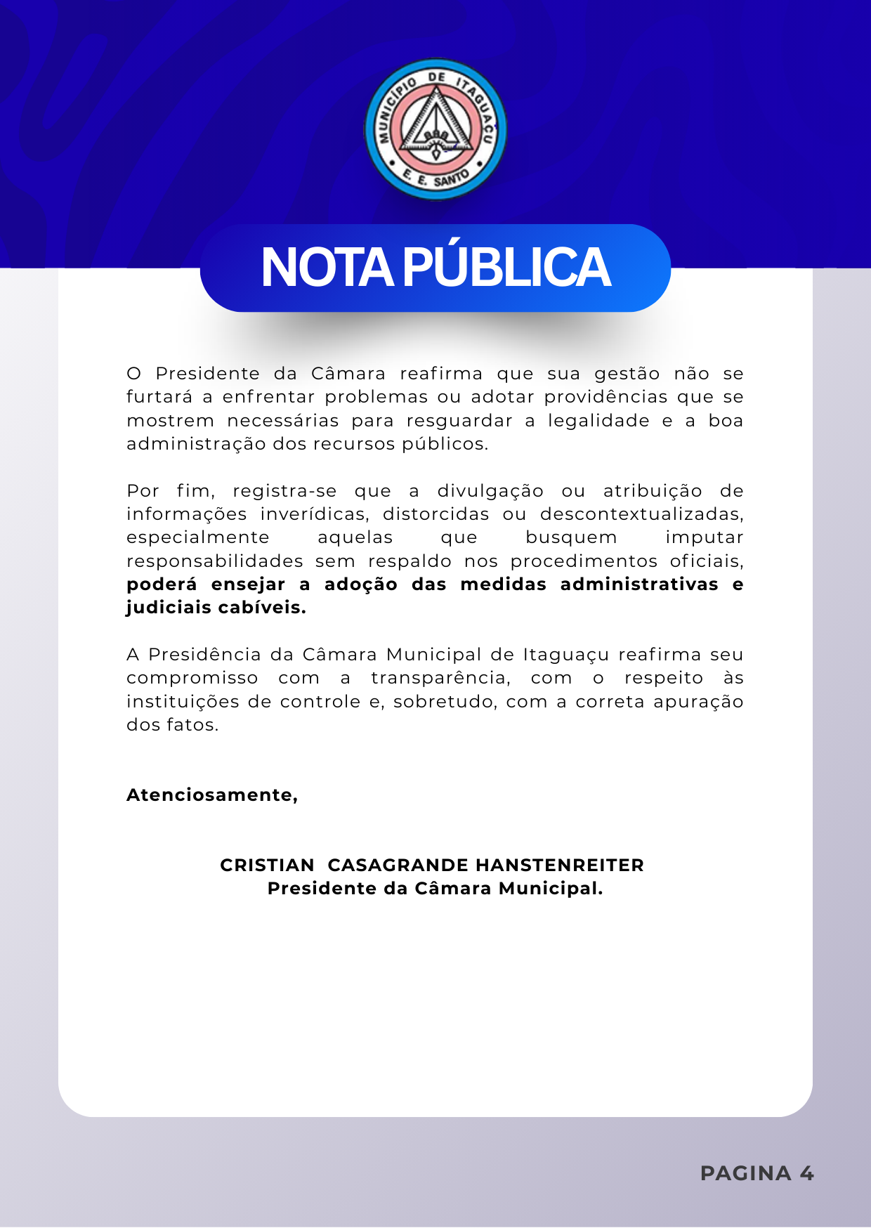E-mail: ouvidoria@camaraitaguacu.es.gov.br ou cmitaguacu@hotmail.com